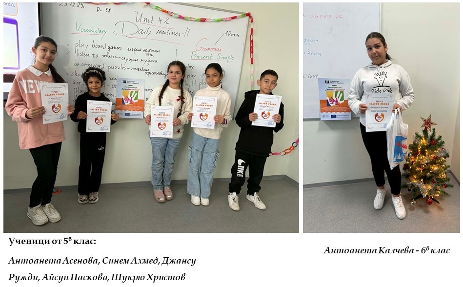 Отличени ученици в училищна инициатива "Месец на добрите дела"